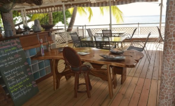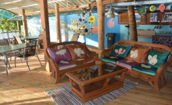 This review is for the restaurant. We stayed at the Hilton nearby (walking distance of five minutes) and ate lunch on the beach at this guesthouse. The location, waves lapping at our toes over burgers, beers, and a vegan poke bowl, was paradise worthy. Our family gives this calm, beautiful, and friendly place five stars.