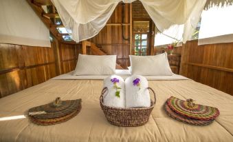 This was our first time staying at an "off-grid" hotel, and it was very pleasant. It i a difficult place to get to, requires a cr and a boat ride from the airport, which was included in the price of the stay. Bring lots of mosquito repellent. All meals are included and are really delicious, and there is unlimited coffee and tea and a lovely outdoor lounge with hammocks and internet above the lobby. There is no hot water which was an adjustment, but overall it is a very welcoming and beautiful place. Highly recommend