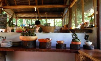 Kenny is the owner and he was super helpful with coordinating our day trips and getting us boat rides to the city. The room with the private bathroom was worth it. Not many bugs got inside the room so that was great! Food was average but all included. No a/c but fans by the bed! Overall great stay