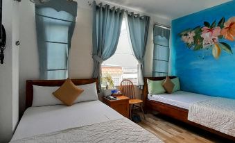 Phòng gia đình 4 người với 2 giường đôi, phù hợp giá tiền. Các dịch vụ như giặt ủi, thuê xe… được hỗ trợ nhanh chóng. Homestay cách biển gần xịt, đi bộ véo cái là tới. Chiều tối dọc bờ biển mở đủ loại hàng quán luôn. Anh chị chủ nhà siêu thân thiện.