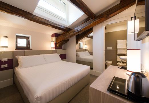 Pros: Perfect location near the centre about 30 minute walk to the Colloseum and some restaurants. Small standard room- Bed was comfortable, bathroom was adequate size. Cozy and very cool decor and architecture. Tea/coffee facilities available. Room cleaned daily. Friendly staff. Cons: coffee maker was broken. Had to call the front desk to fix the kettle. Towel rail and one of the coffee mug handle were broken. Advert and photos are misleading as it shows it does breakfast service but they don't. Miscommunication in terms of late check out fee. Very tiny lift. Leaks in ceiling in the hall. Needs TLC. Overall very good for a short city break. Longer stay maybe choose a different hotel.