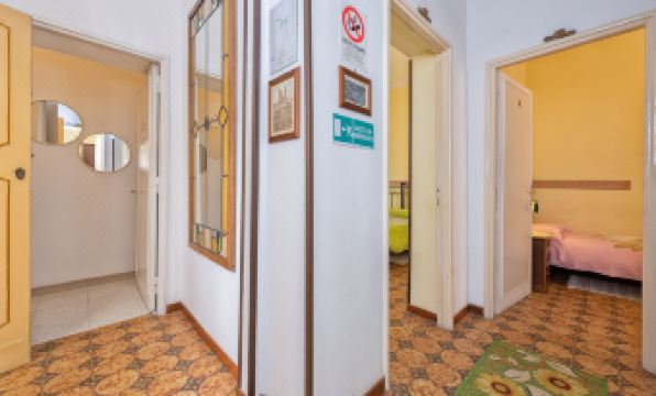 The hotel staff does not speak English. The receptionist greeted me very unfriendly, She spoke into the phone translator in Italian, and I had to answer to her phone in English so that she could hear in Italian. The reception lasted for a very long time. The hotel is very noisy, all sounds in the neighboring rooms are very audible. When the neighbors opened their door, my door rattled with glass. My door was made of pieces of glass and at night the light shone in my eyes on the bed. I asked them not to clean my room, but they came to the room every day and they moved my things as it suited them. Big surprise: the administrator said that I have to pick up my toothbrushes and soap from the bathroom every morning - for ease of cleaning. The hotel does not provide shampoo or soap. The bathroom equipment is very old, the surface of the bathtub is rough, the curtain is old and hard as wood. The window overlooks the roof of a depot, where there is a lot of rubbish and junk. The hotel does not have a coffee machine or kettle.