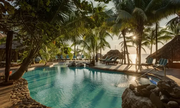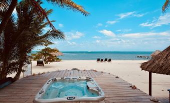 Spent a week here recently and the place exceeded our expectations. Beautiful, clean, 2 bedroom unit. Large pool with shady areas from the numerous palm trees. Excellent bar service. They took care of tours, snorkeling and our plane ride back to Belize city. Everyone was friendly and we could not have chosen a better place to stay. It’s out of the way just enough to avoid the his to Lenox town, yet only a 2 minute golf cart ride to stores, restaurants and bars. Would stay there again in a minute.