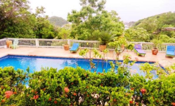 Goo location, but you will have to walk up a hill and a few stairs. Pool is at the very top, it's a good size and kept clean. There is no restaurant or breakfast available but you can get a coffee in the mornings. WiFi is only available near the eating and reception area. Rooms are big and have a hammock each, the beds are a little firm and there is only a fan. Also noticed that there was a drainage issue in the bathroom so there is a bit of a smell. There is also only light curtains on all the windows.