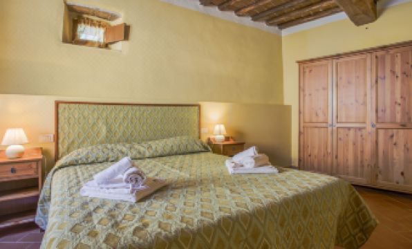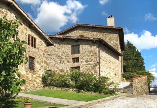 Country house "Castiglioni", detached, surrounded by trees and vineyards. 5 apartments in the residence. 11 km from the centre of Florenz/Firenze, 2.2 km from the centre of Montorsoli, outside the resort. For shared use: property 4'000 m2, garden (not fenced) with lawn and plants, swimming pool (11 x 5 m, depth 100 - 120 cm, seasonal availability: 01.May. - 30.Sep.). Outdoor shower, garden furniture, barbecue. In the house: washing machine (for shared use). Motor access (800 m via unmade road). Parking on the premises. Shop 3 km, supermarket 4 km, bus stop 2 km, railway station "Florenz/Firenze" 11 km. Walking paths from the house 50 m. Local sale of farm products. Please note: the owner lives on the same property. Dogs are not allowed in the swimming pool area. "Gli Orci", 2-room apartment 50 m2, on the ground floor. Tasteful furnishings: living/sleeping room with 1 sofabed (110 cm, length 185 cm), dining table and satellite TV. 1 room with 1 french bed (160 cm), shower/bidet/WC. Open kitchen (Gas stove, 4 gas rings, kettle, microwave). Gas heating. Natural stone floors. Small patio 20 m2. Terrace furniture, deck chairs (2). Panoramic view. Facilities: Internet (WiFi, free). Parking (1 car). Please note: non-smokers only. Maximum 1 pet/ dog allowed. Private entrance. No mandatory extra charges to be paid on-site. IT048043B5IQLZ5IY3