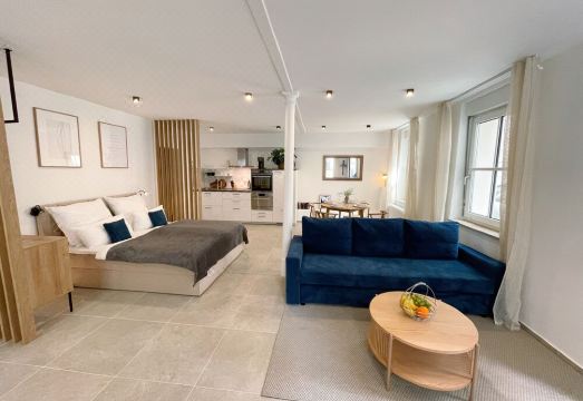 The apartment is located in a quiet inner courtyard, yet is centrally located in the heart of the city center. Numerous restaurants, bars and sights are within walking distance.