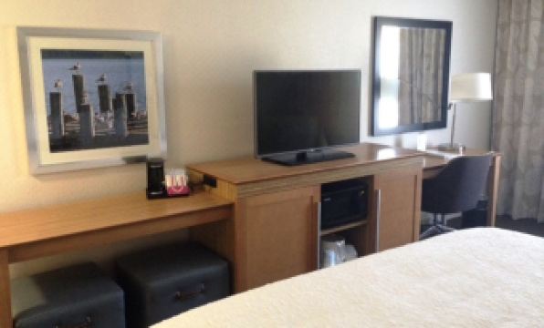 Nice standard Hampton Inn. Well maintained. Close proximity to TPA. Pleasant staff. Free airport shuttle run by a third party and is efficient.