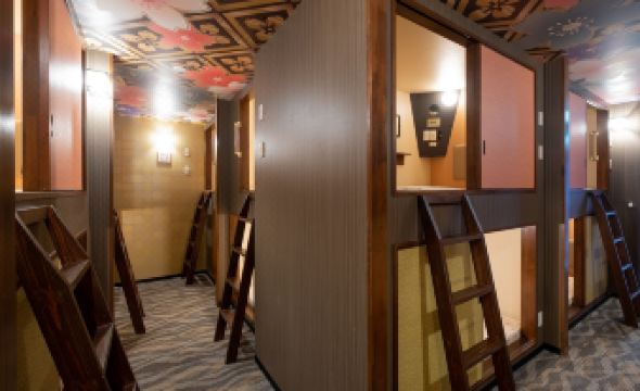 The shared bathroom is equipped with a bidet, free toiletries and a hairdryer. At the capsule hotel each room comes with air conditioning and a flat-screen TV.