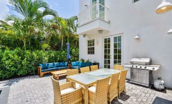 Step into the tropical backyard, designed for both relaxation and entertainment. The outdoor space features a heated pool, private putting green, plush loungers, BBQ grill, and ample seating areas—perfect for soaking up the South Florida sun or hosting a laid-back evening under the stars. Our lush landscaping and stylish architecture create the perfect backdrop for golden hour photos and Insta-worthy moments—consistently a guest favorite.