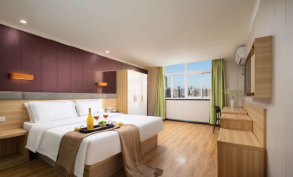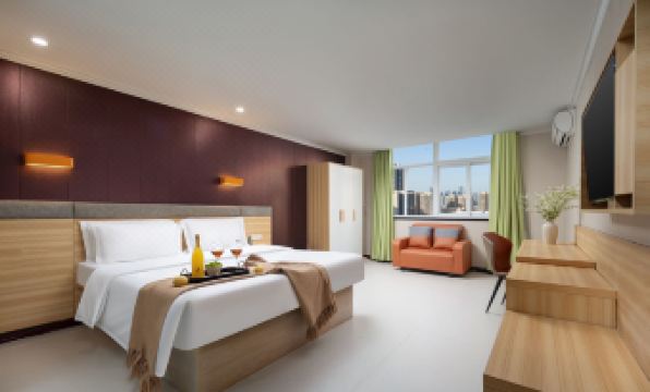 The room layout in the hotel is good, quite large, with a table and wardrobe, as well as a washing machine and refrigerator (both in the room). The facilities are particularly complete and the room size is large, but the location of the hotel is a bit remote, and the environment at the entrance is a bit shabby. If there are friends staying here, don't open the room window on a dusty day in Wuhan, as there will be a dusty smell.