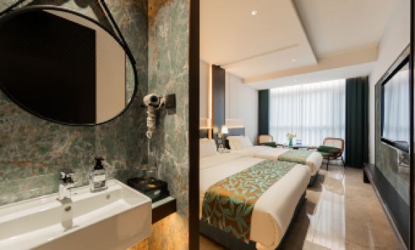 環境不錯 乾淨清新 位置也很棒!不光往哪邊走都有商業區和景點 非常好!特別表揚1124值班的前台小姐姐!實在是太棒啦!!服務很好!賓至如歸!下次再來!