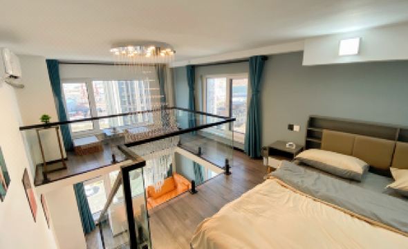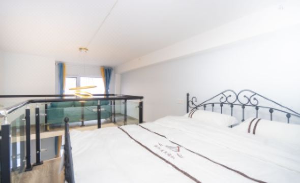 我訂的這個就是個loft,可以樓上樓下各住一人,雖然空間不大,但冰箱、洗衣機都有,上層還安排了一個喝茶的地方。