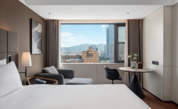 IntercityHotel Yantai Coast Yantai Binhai Plaza IntercityHotel is located in the bustling commercial area of Zhifu District, adjacent to Wanda Plaza, Suochengli, Binhai Square Yantai Mountain Scenic Area, Yantai Railway Station, with a superior geographical location, 10 minutes' walk to the beach, a magnificent view of the sea and sky. The hotel has 140 guest rooms, designed by the latest intercity hotel by the well-known interior designer MATTEO THUN, the rooms are made of black, gray and white walnut wood, and the white duck down sleep pillow, Sealy deep sleep mattress and intelligent dynamic shower are used to let the fatigue of the journey be unloaded and the drowsiness will be on the head in seconds. The room is equipped with a De'Longhi kettle, a minibar (drink Munich craft brew, algebraist hanging ear coffee). The hotel is newly equipped with innovative composite space and video conferencing system. A well-known fitness brand, Technogym professional fitness equipment, has won the favor of a new generation of business elites. Intelligent washing and drying, customized ironing services, etc., bring advanced perception and enjoy an efficient and noble experience. Dr. Marquardt, who studies kinesiology and healthy living concepts, has developed more than 100 kinds of exclusive Chinese and Western buffet breakfasts for Intercity, including German sausages, lye bread, and Yantai local delicacies, so that guests can start their day in a healthy way. The hotel adopts cutting-edge intelligent design and selects high-quality supporting facilities, whether it is business or vacation travel, it gathers natural and travel attributes, and is a high-end hotel that must be lived in for urban exploration.