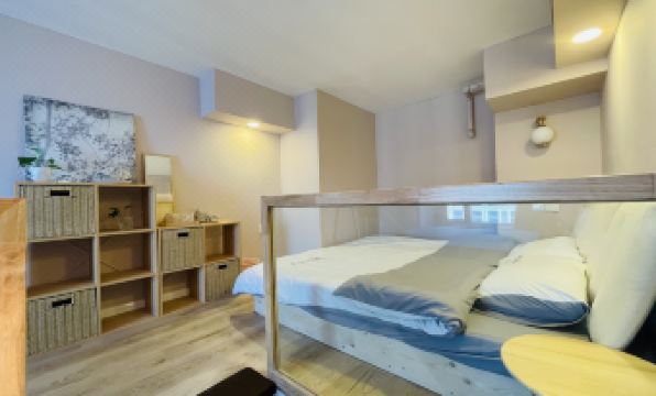 After 2 years, the second stay. I really like the loft type hotels and homestays in the suburbs of the city. Rich living facilities, washing machine, cooking utensils and kitchen utensils... a home on the road. Generally, the space in the parity standard room of the hotel is small and cramped, and the loft type provides 2-3 times the usable space at the same price. Moreover, the interior space is high, which makes people feel comfortable. The store's customer service responded in a timely manner, and the broken kettle was replaced in time without disturbing the residents. The parking lot is convenient. The room has a wide view, and there is a free large playground for children in Longhu Primary School next to it. Opposite the famous scenic spot Yangma Island. The room I stayed in this time was much smaller than the room I stayed in before, and it was relatively cramped. But still much better than the standard room