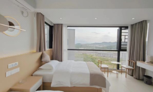 Perfect location few minutes walking distance from rail station. There are some restorants and shops around. 10 mins riding to reach 72 tower Qilou Scenic Area. Easy to find. The propriety send the password and we just enter to the room straight away. There is a water dispenser in the corridor.