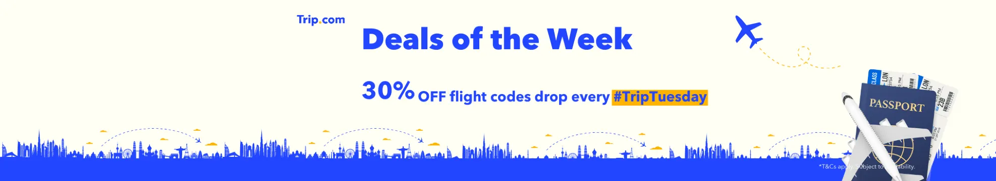 Discover incredible travel savings with Trip.com's (http://trip.com/) Weekly Deals! Every week, unlock exclusive offers on flights, hotels, rental cars, attractions, eSIM, airport transfers, vacation rentals, and more. Enjoy major discounts such as 30% off flight codes and up to 50% off select hotels. Whether you're planning a family vacation, a city adventure, or a relaxing escape, Trip.com's Weekly Deals provide frequent opportunities to book and save. Deals are limited and updated regularly—check back often to find the best offers for your next trip. Trip.com is your trusted partner for stress-free booking and unbeatable prices.
