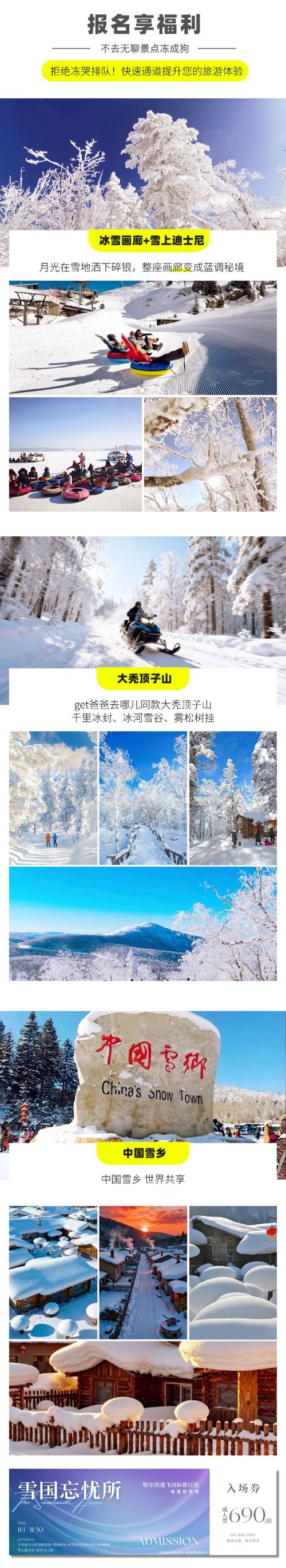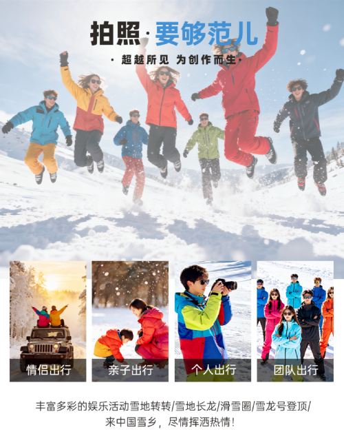 [Diverse Attractions] Ride the Snow Dragon vehicle and snowmobile up Da Tuding Mountain, explore the Ice and Snow Gallery, enjoy snow spinning rides and the Snow Dragon attraction, and immerse yourself in a 1-day tour of Snow Town.