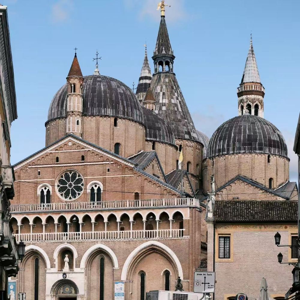 ▲ The Basilica of Saint Anthony in Padua has undergone multiple expansions throughout history, resulting in a blend of various architectural styles. The central section of its brick facade and the nave feature Romanesque style, while the sides are Gothic. The side aisles and most of the subsidiary chapels also exhibit Gothic characteristics. The tomb of Saint Anthony is designed in Renaissance style, and the Treasury Chapel added at the rear of the church in the late 17th century showcases Baroque elements. The seven cross-shaped domes resemble those of St. Mark's Basilica in Venice, with their externally elevated sides showing strong Byzantine influence. The small bell towers surrounding the domes also incorporate Arabic stylistic features.