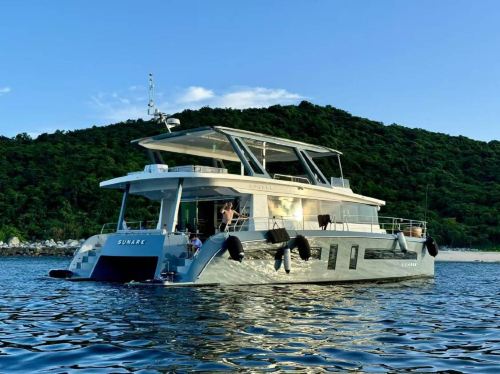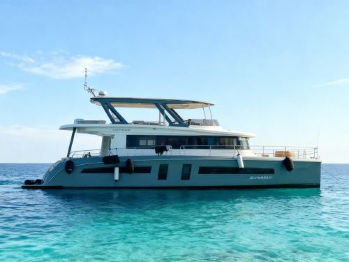Solar-powered catamaran flybridge yacht, tailored for small group luxury outings. The catamaran offers high stability and flexible space, with solar power ensuring a quiet environment. The deck is perfect for sightseeing and casual drinks, while the indoor area provides comfortable relaxation. Whether for a family's light luxury cruise or an intimate gathering with friends, enjoy a comfortable maritime experience with low-carbon sustainability.