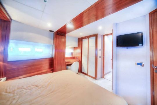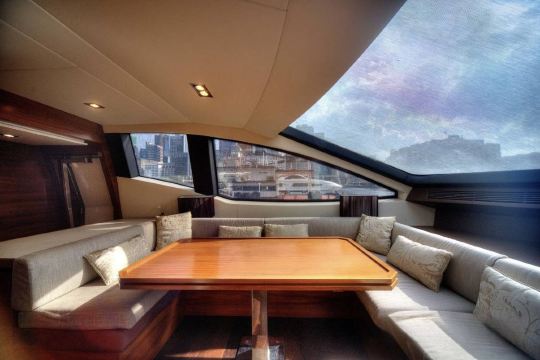 Flybridge, deck, salon, dining area, bedroom, bathroom, etc.