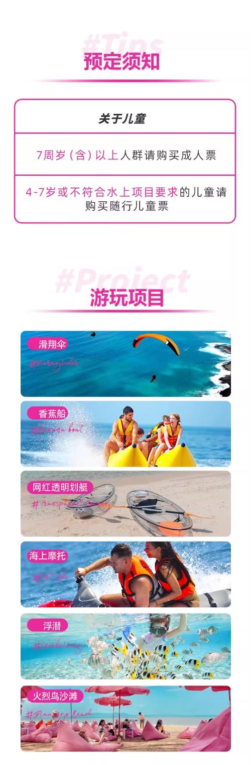 - Children aged 4–7, or those who do not meet the height/age requirements for water activities: please purchase a Child ticket (does not include water activities)