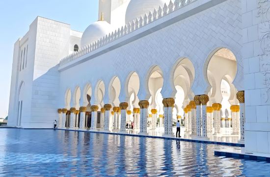 ▲ Sheikh Zayed Grand Mosque: One of the world's most renowned mosques, featuring the largest hand-woven carpet crafted by 1,300 female artisans and breathtaking gilded Swarovski crystal chandeliers. Its four 106-meter minarets and marble mosaic courtyard showcase grandeur, perfectly blending religious significance with architectural artistry.