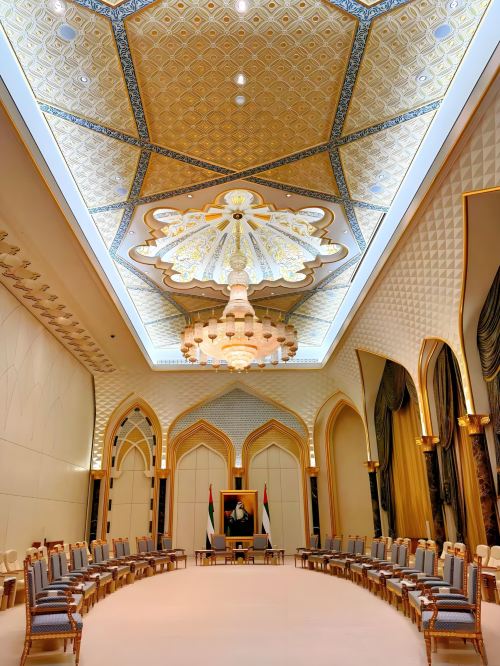 ▲ Qasr Al Watan: A still-functioning presidential palace where architecture blends Arabic tradition with modern craftsmanship. Its library houses 50,000 books including 1,800 rare manuscripts, while the House of Knowledge exhibits Arab civilization's contributions to the world. Golden calligraphy sculptures and the blue-and-gold banquet hall showcase royal grandeur.