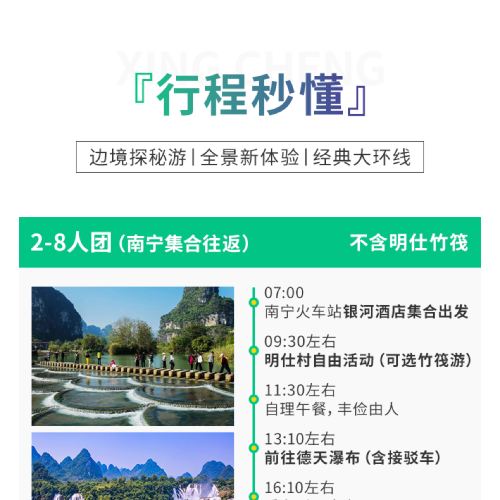 2. [2-8 Person Business Small Group]: A genuine small group tour with no more than 8 people per vehicle (vehicle arrangements based on group size). The pick-up range for the 8-person business small group covers hotels within 5 km of Nanning Station.