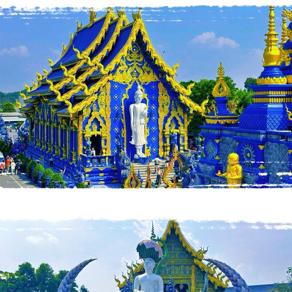 The Blue Temple, with its predominantly cobalt blue color symbolizing the wisdom and compassion of Buddha, is accented with dazzling gold details, creating a striking contrast and a surreal, dreamlike atmosphere. While the exterior of the main hall is in the classic Lanna style, the interior is a completely different world. A colossal white Buddha statue sits solemnly in the center of the blue hall, behind which are exquisite murals depicting Buddhist stories and myths. Compared to the bustling White Temple, the Blue Temple offers a greater sense of tranquility and solemnity, allowing you to calmly appreciate the power of art and the sacredness of religion.