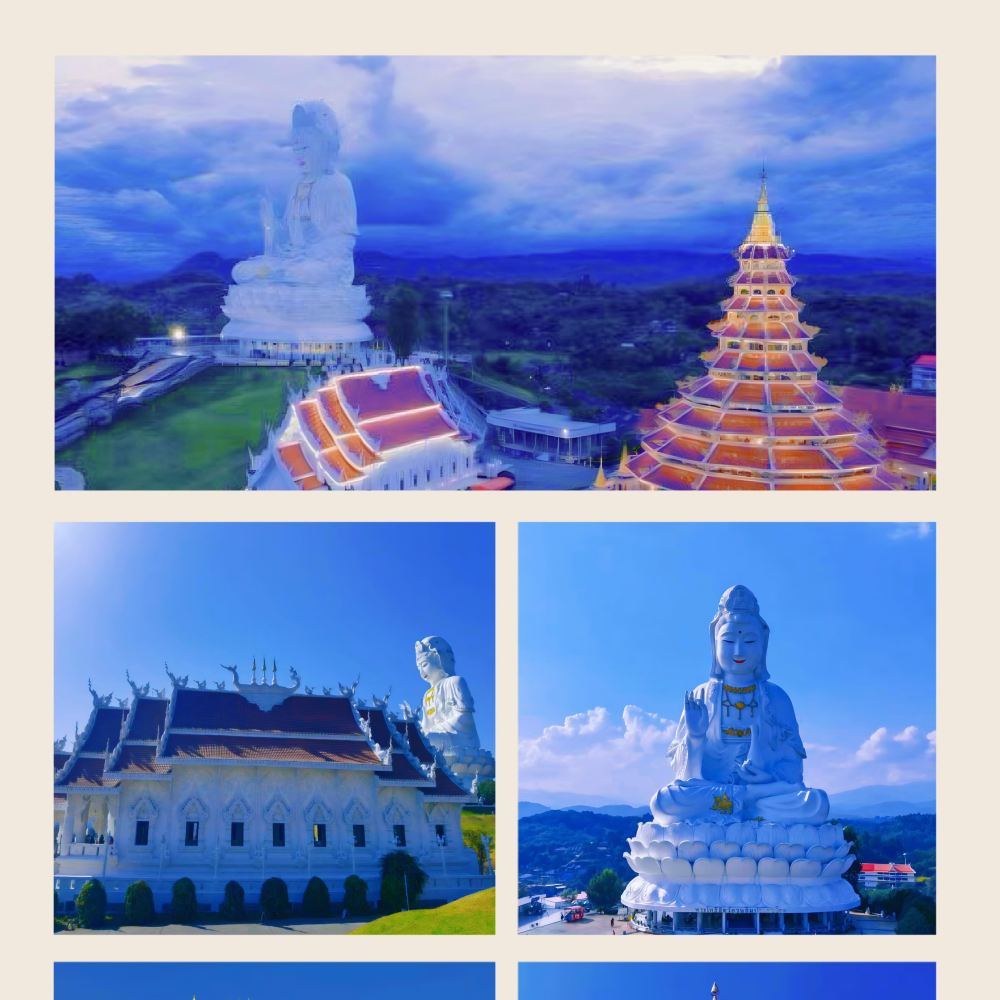 [White Temple] Its original name is Wat Long Khun, also known as Wat Long Khun, Wat Ling Kwang, or Wat Long Khun. From a distance, the temple appears to be built of shimmering porcelain; only upon closer inspection does one realize that this illusion is created by white paint and glass glitter. The White Temple is painted pure white with silver mirror edging, serenely reflecting a dazzling light. It has no gold embellishments whatsoever; its silvery white surface resembles delicate hands gently reaching towards the sky.