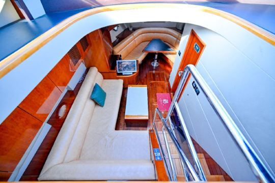 High-quality yachts with KTV for singing, 360° sea-view flybridge, perfect for family and friend gatherings, company team-building, and DJ parties at sea.
