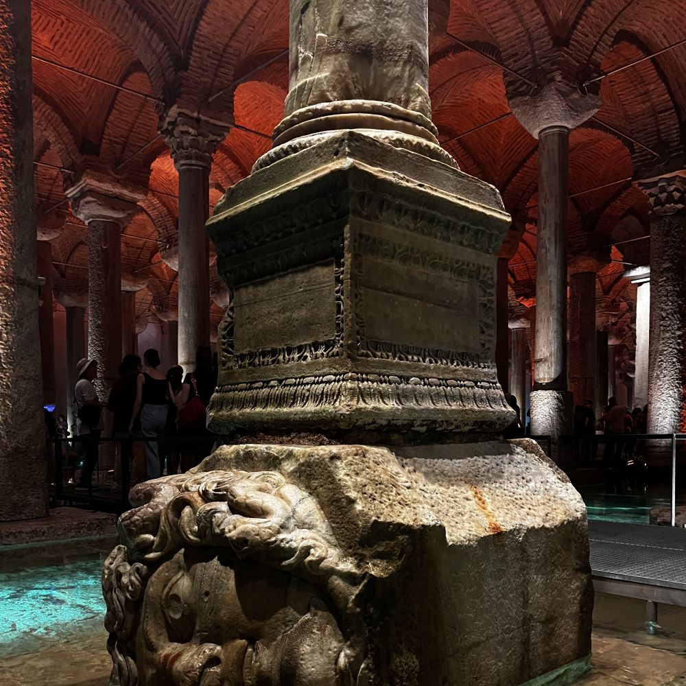 ▲ A grand palace constructed with 336 massive stone pillars, each intricately carved with exquisite patterns. Inside the palace, there are two inverted stone sculptures of Medusa's heads, which were excavated from a 2-meter-thick layer of silt during the 1984 renovation. The echoing sound of dripping water, combined with the eerie legends, seems to transport you into another mysterious world.
