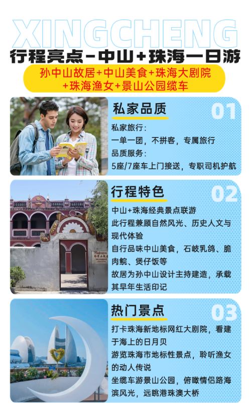 HomeZhongshanDay toursPrivate small group with pick-up/drop-off service|Sun Yat-sen's Former Residence + Zhuhai Popular Attractions + Jingshan Park Cable Car 1-day Tour