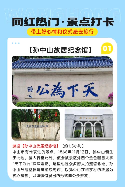Zhongshan + Zhuhai Classic Attractions Combo Tour; This itinerary combines natural scenery, historical culture, and modern experiences; Savor Zhongshan delicacies on your own, such as Shiqi pigeon and crispy meat carp