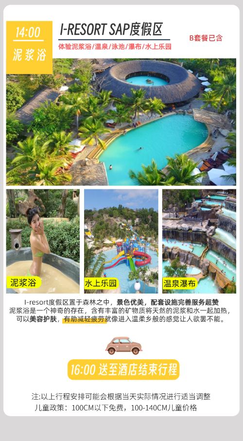 Notice: I-Resort Mud Bath attraction will be closed on February 16 and 17. The 1-day tour in the city will be adjusted to visit 100 Egg Mud Bath instead.