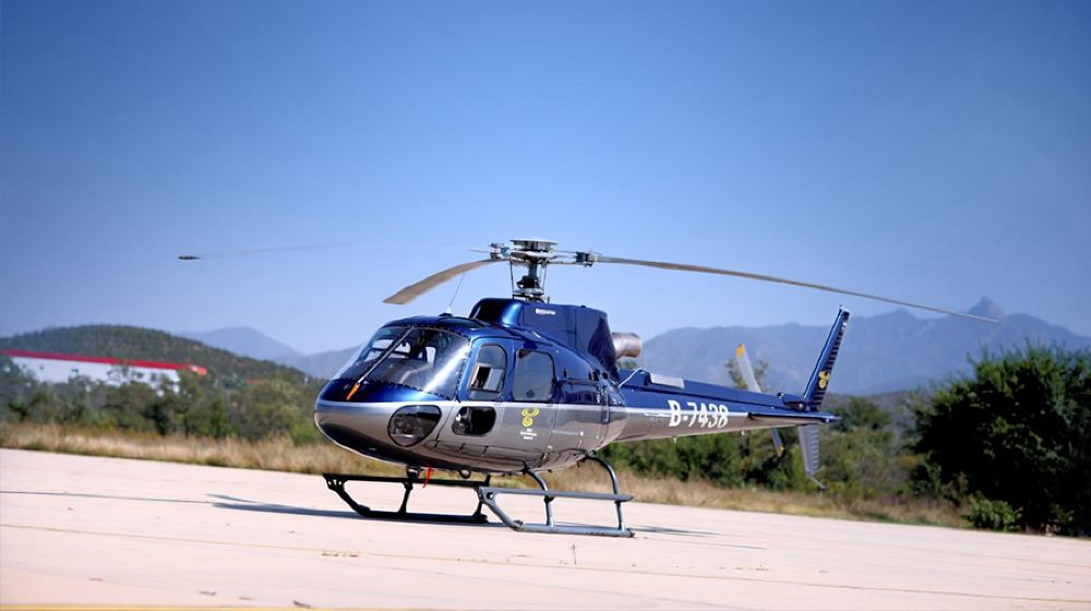 AS350 or H125 six-seater aircraft with a passenger capacity of 5 (1 in front + 4 in back), featuring 3 charter package route options