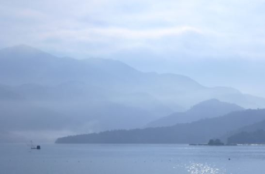 Gazing at Sun Moon Lake, the water is as smooth as a mirror, with enchanting scenery. The beauty of Sun Moon Lake lies in the surrounding layered peaks, the vast expanse of the lake, the crystal-clear water, and the misty landscape resembling an ink painting.