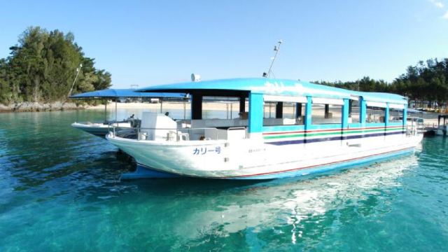 ▲ For trips departing after October 1, a glass-bottom boat experience at Mibaru Beach will be added. Estimated local time 10:25 AM: Arrive at Mibaru Beach ※Join the 20-minute glass-bottom boat tour at 10:40 AM. 11:10 AM: Depart from Mibaru Beach and head to Okinawa World · Gyokusendo Cave.