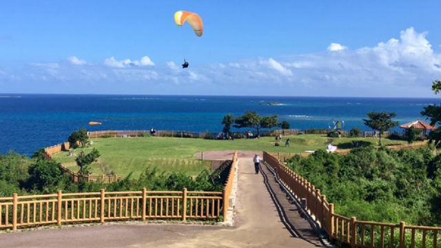▲ Cape Chinen is a scenic spot in southern Okinawa where many visitors stop to explore. From here, you can see distant islands like Kudaka Island, and the area is often home to adorable cats resting in the park.
