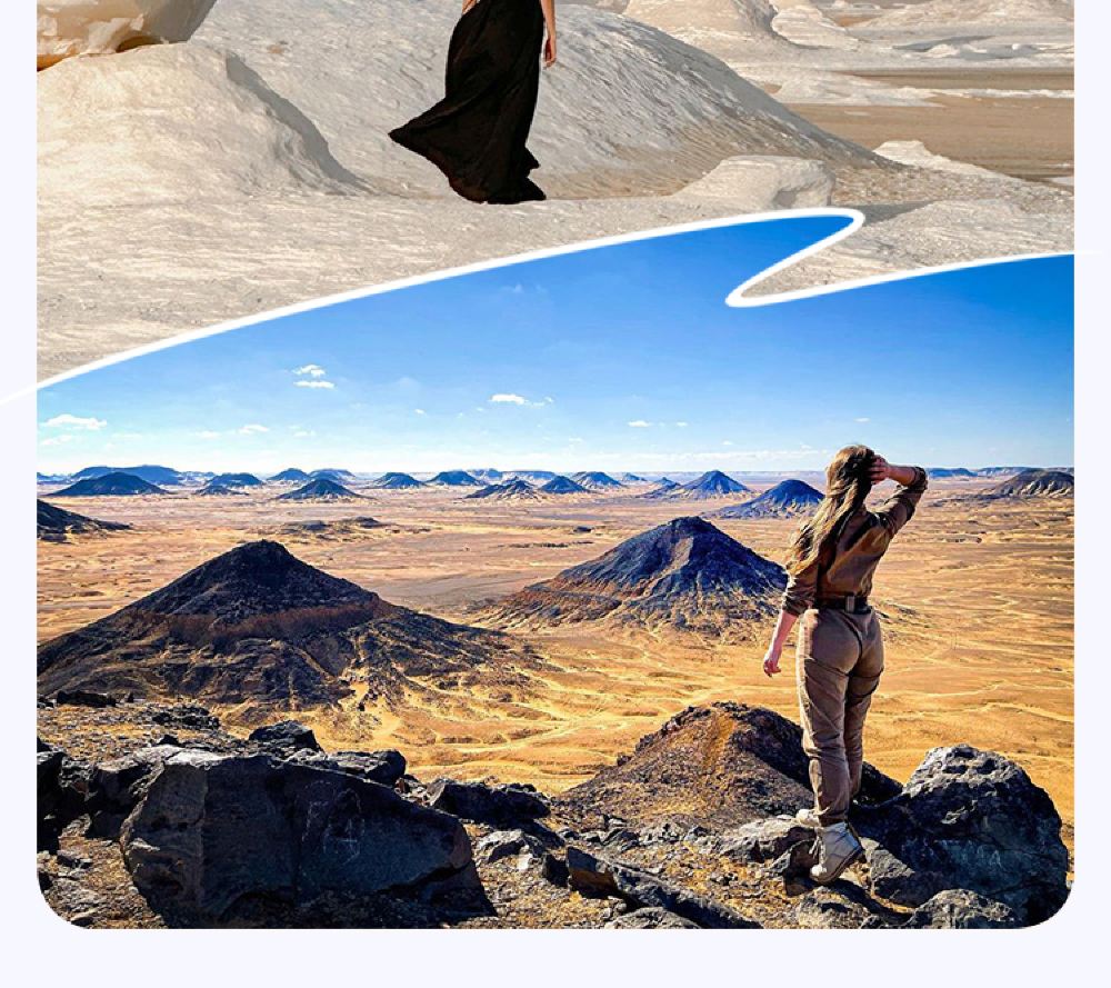 [Exploration Journey] Traverse the black-and-white landscapes, discover volcanic wonders and Crystal Mountain, chase sunrises and sunsets, encounter wind-eroded rock formations and ancient fossils