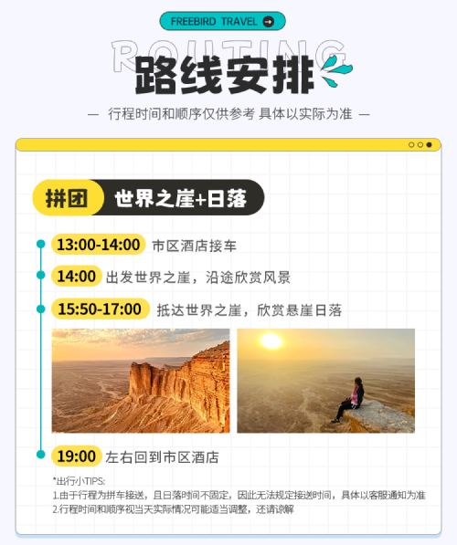 1-day tour to Edge of the World in Saudi Arabia with Chinese-speaking guide|Pick-up & drop-off at the hotel|Join-in tour/Private tour