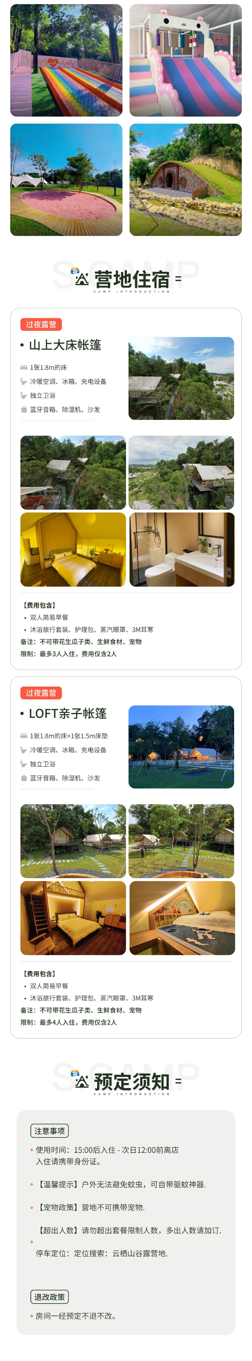 validity period: Check-in after 3:00 PM – check-out before 12:00 PM the next day. Friendly reminder: Mosquitoes and insects are unavoidable outdoors, so you may want to bring your own insect repellent. Pet policy: Pets not allowed at the campsite. [Exceeded number of people] Please do not exceed the maximum number of people for the package. Please add a booking for additional people. Campsite location: Search for Yunqi Valley camping. Contact customer support: After booking, please check the supplementary notes on the booking page and proactively contact customer support.