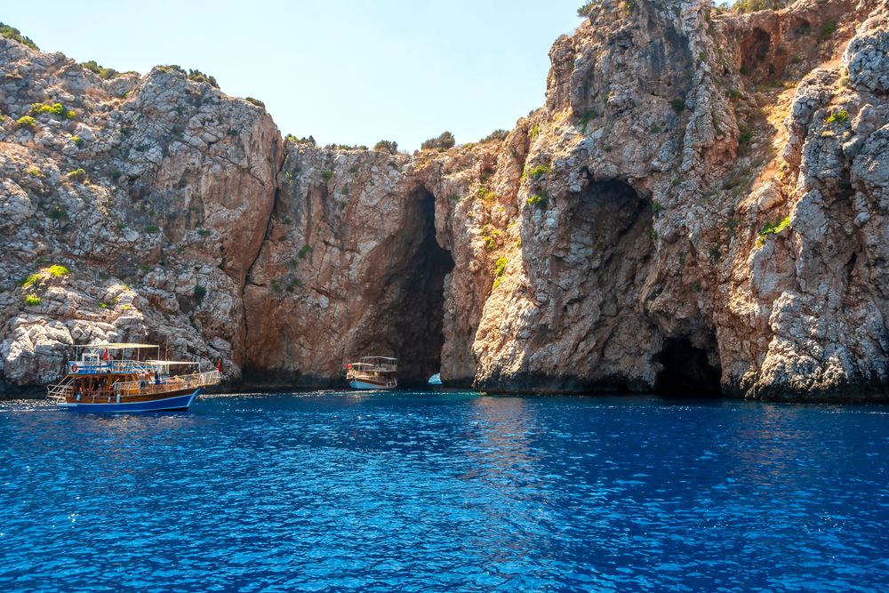 Antalya, Turkey - The yacht tour to Turkey Maldives at famous blue sea at Suluada, Adrasan.