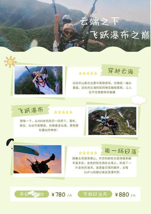 After your flight, you can also explore nearby attractions such as the 5A-rated Qiongtai Fairy Valley scenic area, the largest waterfall in East China, and the glass walkway at Huixian Bridge! There's also the Greentown Ski Resort, off-road motorcycle base, and Longchuanxia Rafting waiting for you to challenge!