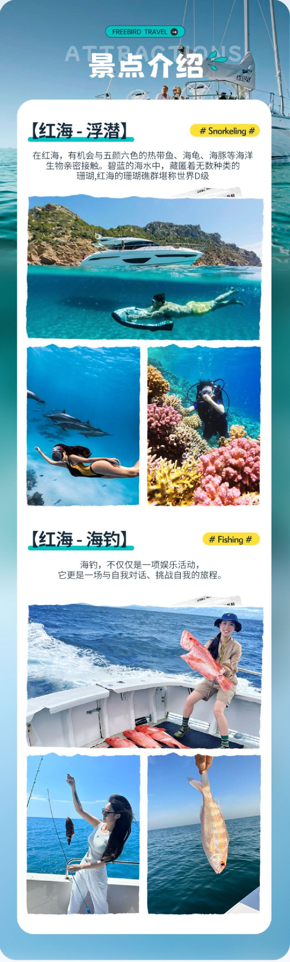[Red Sea Snorkeling] In the Red Sea, you'll have the chance to get up close with colorful tropical fish, sea turtles, dolphins, and other marine creatures.