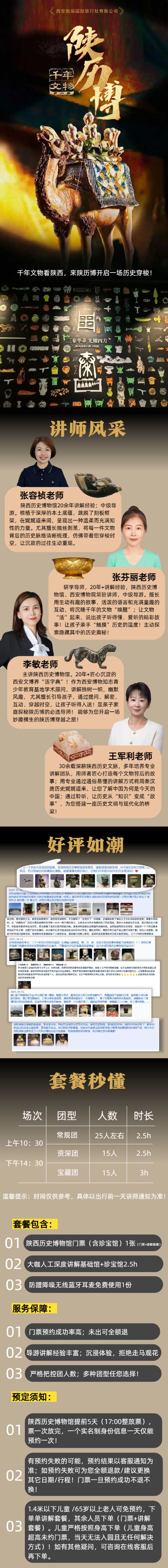 1. Shaanxi History Museum is a public welfare museum [admission ticket is free, reservations are required five days in advance]. Placing an order for a package that includes admission tickets defaults to helping you reserve admission tickets for the basic exhibition hall, with a 99% success rate for ticket issuance. The ticket issuance result is subject to customer support notification. If tickets are not issued, you can reschedule or receive a full refund;