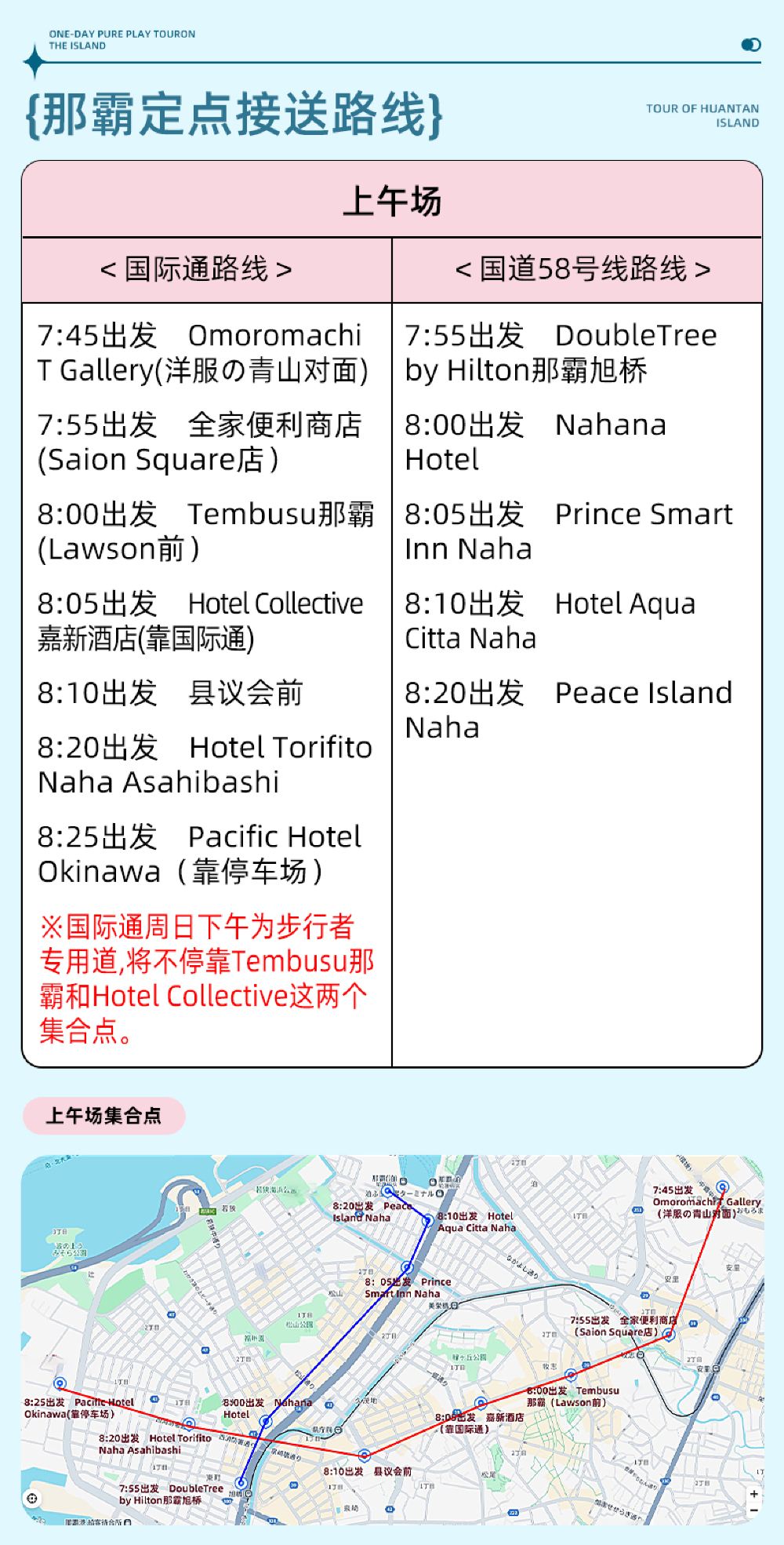 Group tours are available for travel between Naha and Chatan, with both morning and afternoon departures.