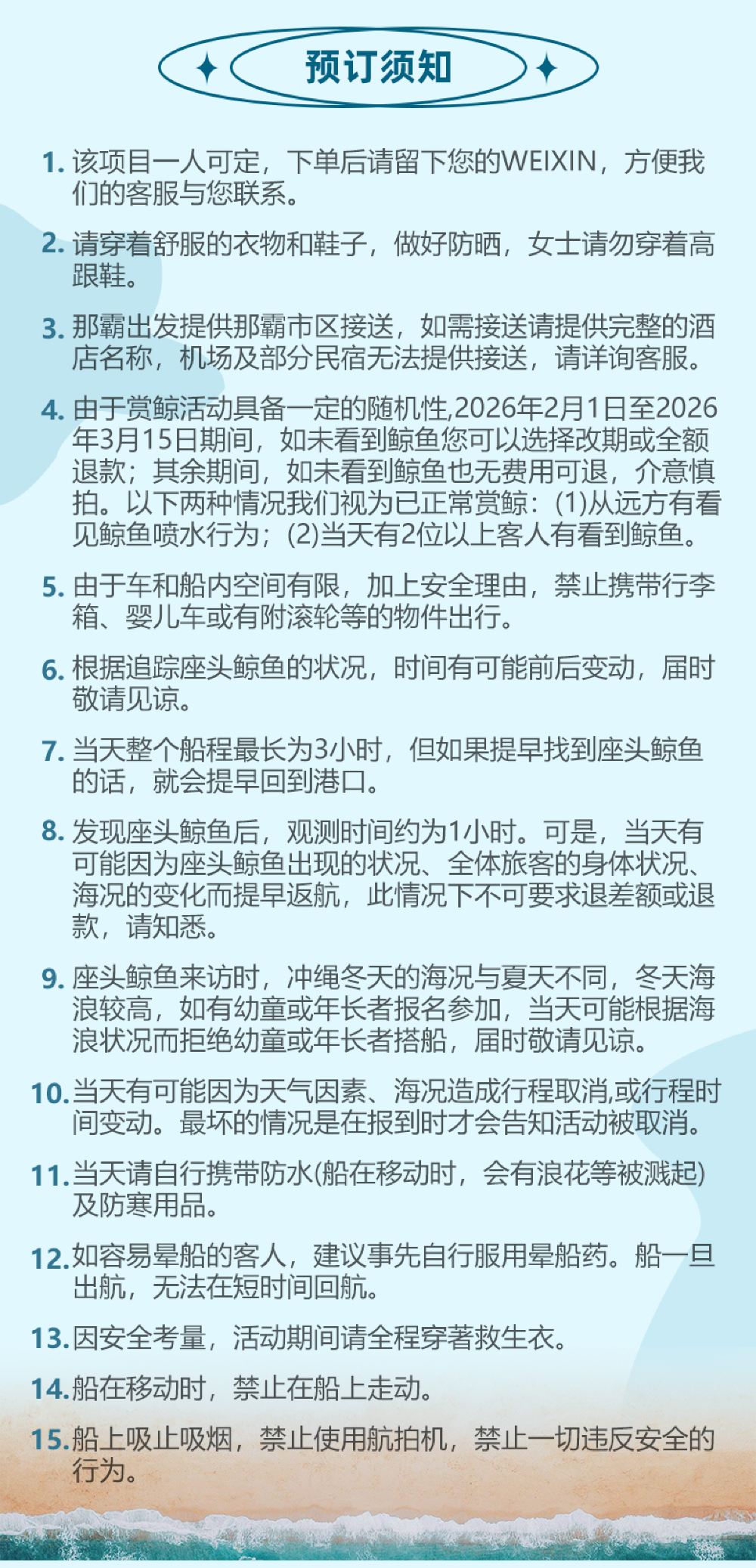 Whale sighting guaranteed: Full refund available if whales are not spotted between 2.1-3.19, rescheduling options available for other periods