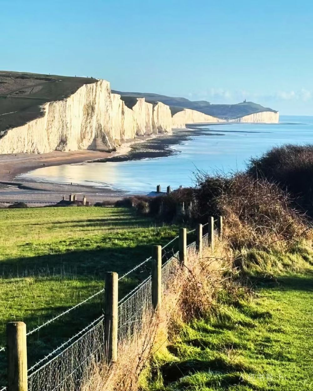 This is the best spot to capture the full view of the white cliffs, with blue skies, white clouds, white cliffs, and the blue sea creating a breathtaking scene!