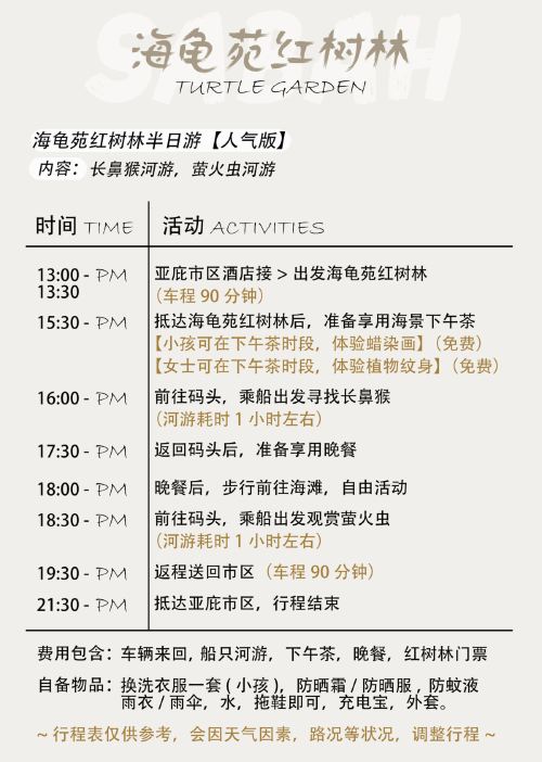 Sabah Turtle Garden Resort Mangrove Half-day Tour|Proboscis monkey|Firefly|One Step Beach